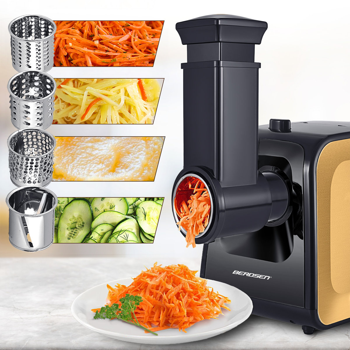 Twórz perfekcyjne wiórki, słupki i inne kształty z łatwością niedostępną dla ręcznych tarek. Przyspiesz przygotowanie surówek, placków i innych dań, ciesząc się wygodą i doskonałym efektem każdego dnia!