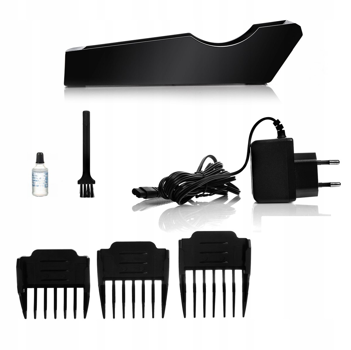 Ładowanie może odbywać się na kablu lub poprzez odłożenie maszynki na bazę.
