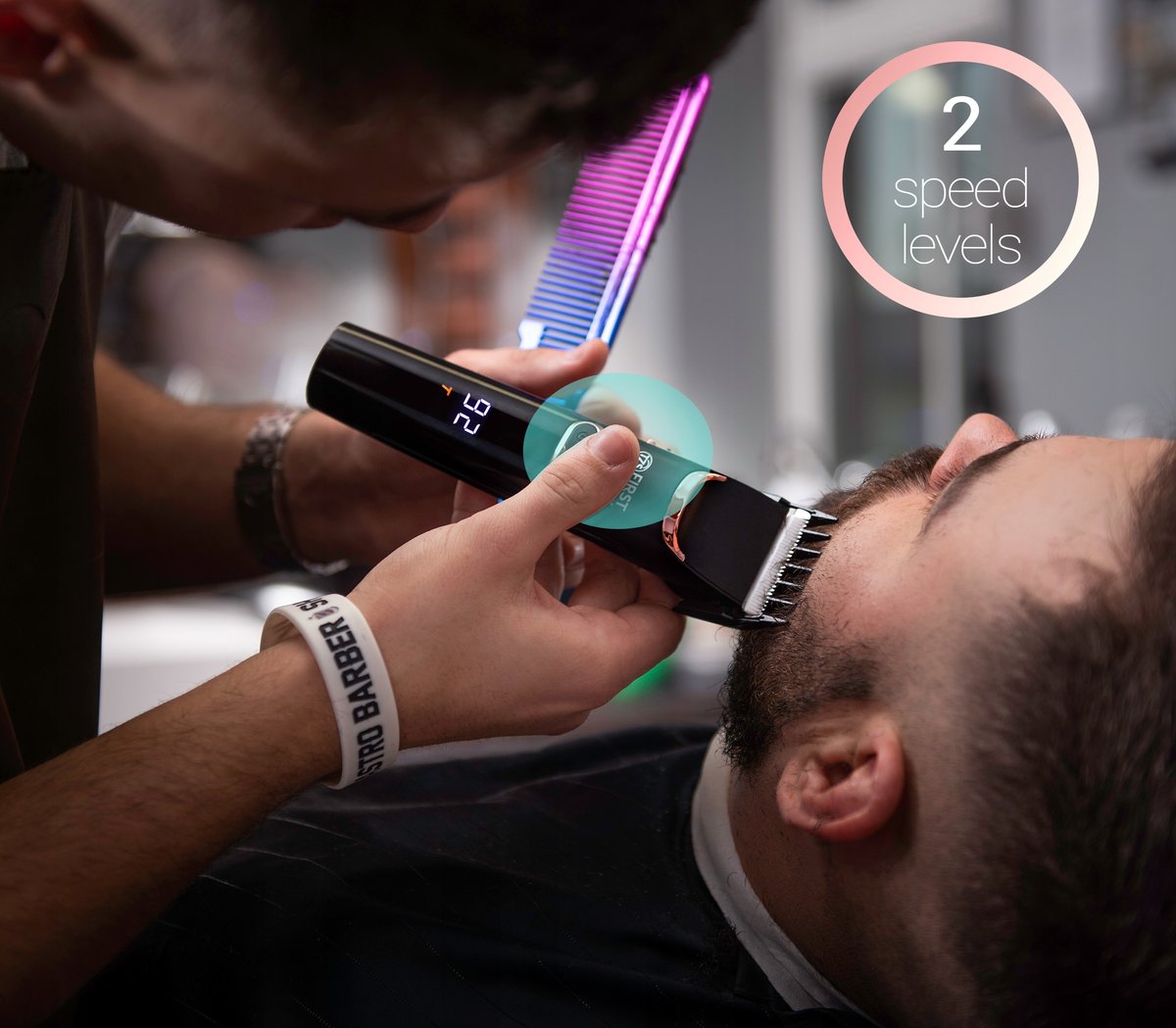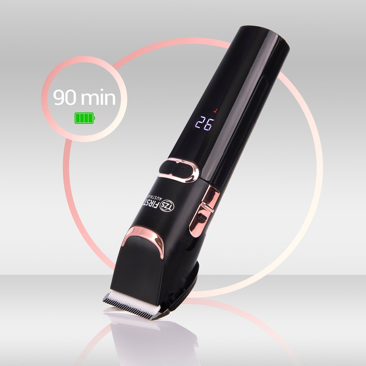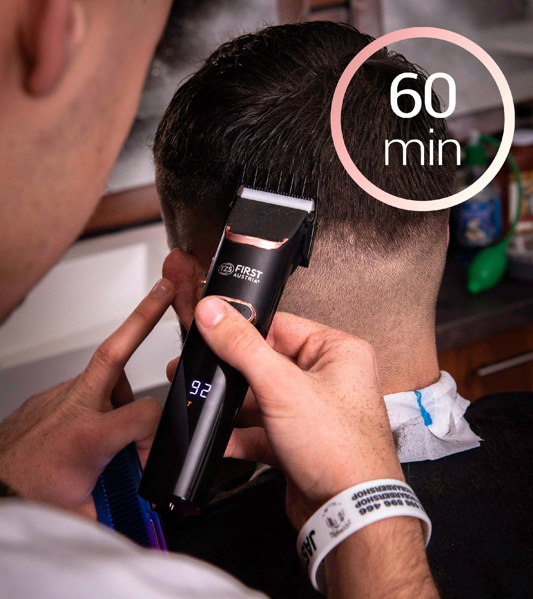 Maszynka do strzyżenia First Austria została zaopatrzona w wyświetlacz LED który poinformuje nas o: