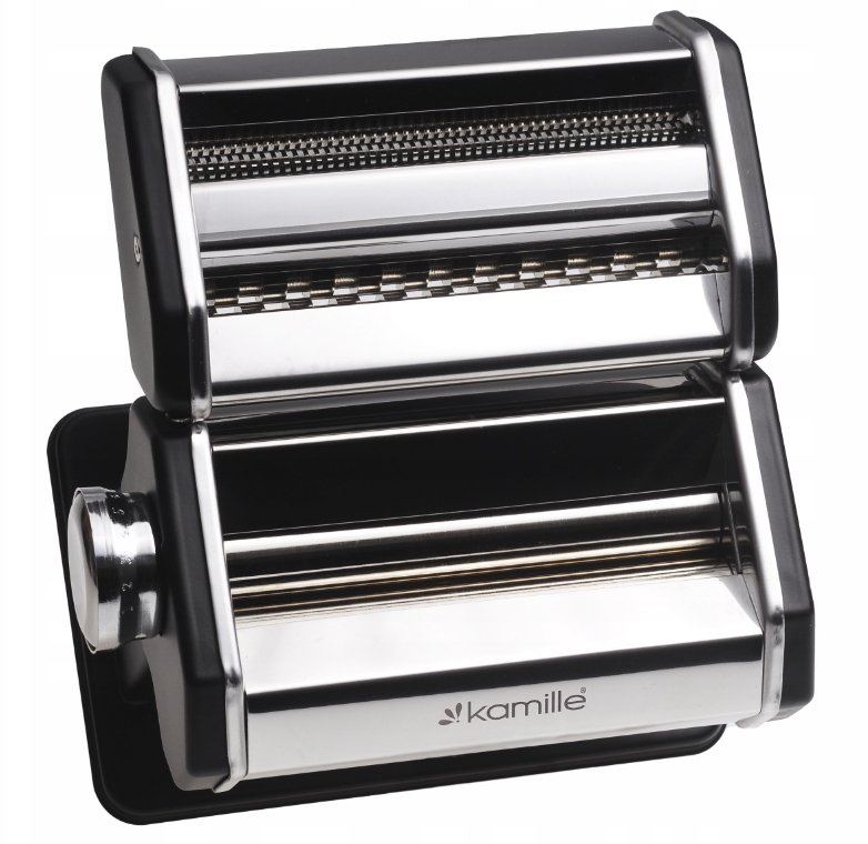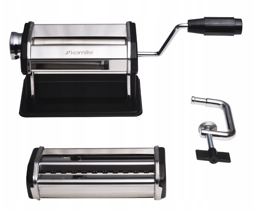 Maszynka do wałkowania ciasta i robienia makaronu Kamille wykonana z wysokiej jakości stali nierdzewnej oraz tworzywa sztucznego.
