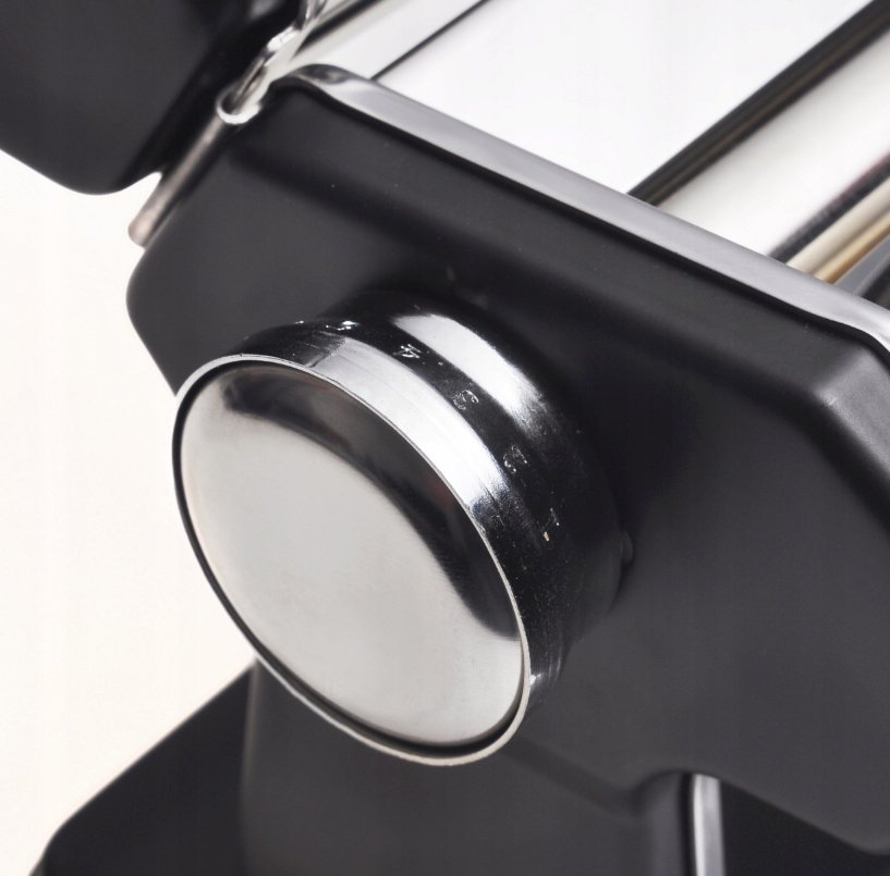 Maszynka pozwala wałkować ciasto o szerokości 15 cm i regulować jego grubość za pomocą pokrętła.