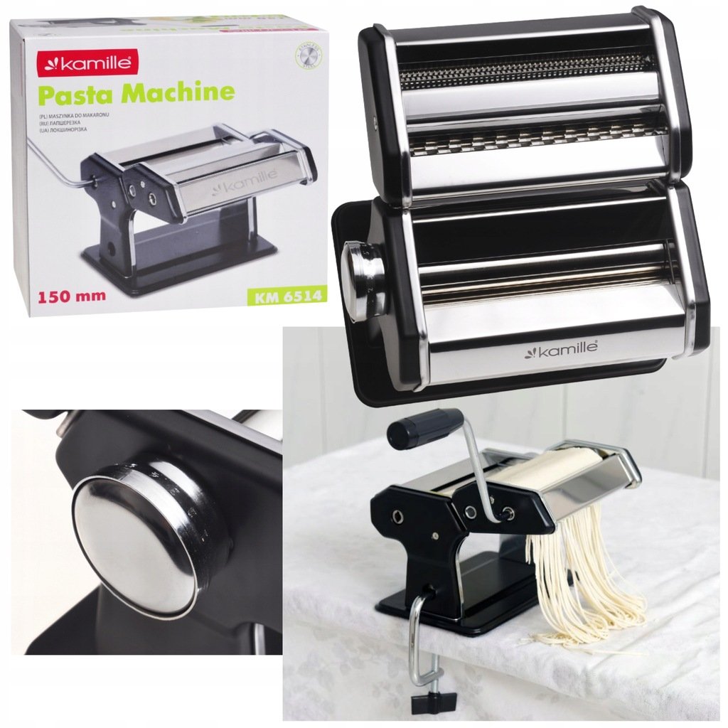 MASZYNKA RĘCZNA DO CIASTA MAKARONU MAKARONÓW 2W1 WIELOFUNKCYJNA SOLIDNA ✅Cena katalogowa 239,99 zł ✅Ostatnie sztuki w promocyjnej cenie Maszynka do wałkowania ciasta i robienia makaronu Kamille