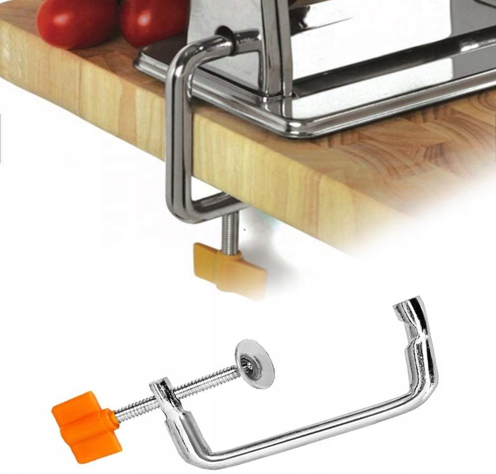 - Zacisk stołowy zwiększa stabilność maszyny podczas użytkowania. Zdejmowana korba, delikatne obracanie ułatwiają ugniatanie ciasta. Maszynka ułatwia produkcję makaronu w domu o wiele łatwiejsze niż ręcznie