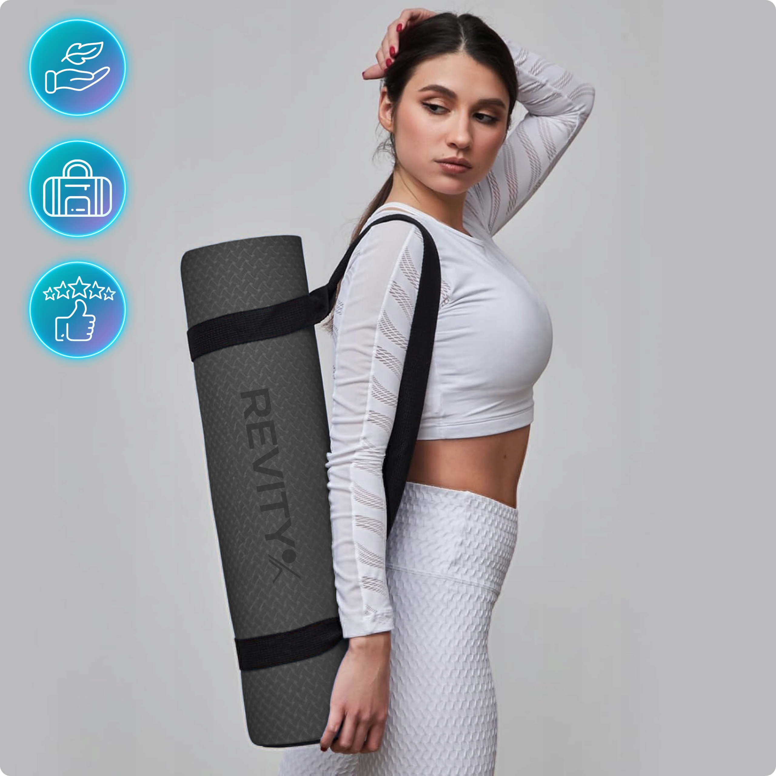 MATA DO ĆWICZEŃ JOGI PILATESU FITNESS GIMNASTYCZNA GRUBA ANTYPOŚLIZGOWA Kolor czarny 1. Czym jest mata do ćwiczeń REVITY TRAINING MAT? TRAINING ...