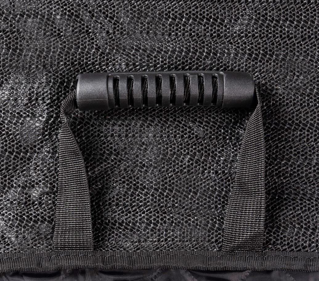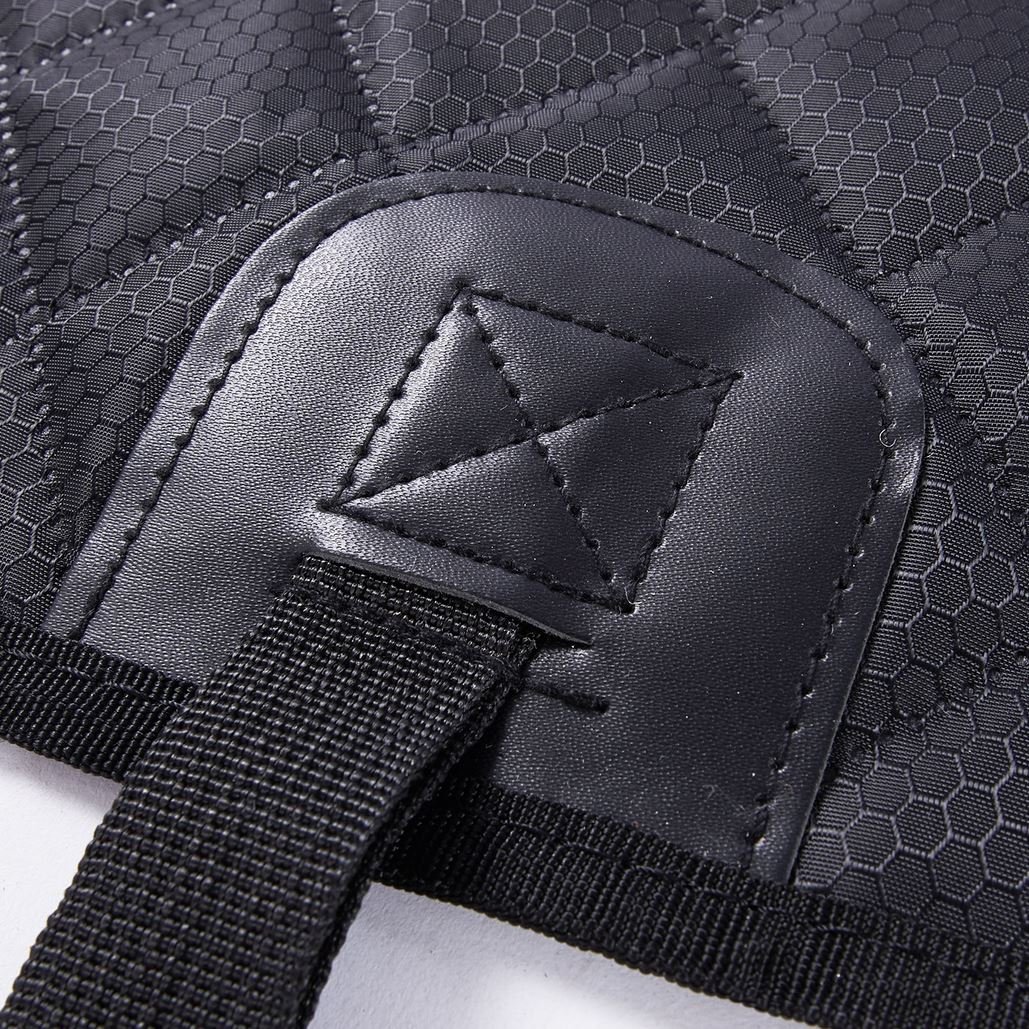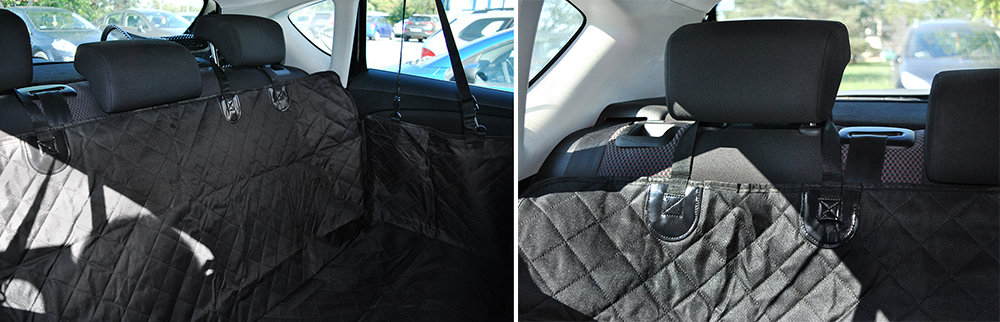Montaż maty dla psa jest bardzo prosty. Zdecydowanym ułatwieniem są specjalne uchwyty zapinane na klipsy oraz karabińczyki. Można dopasować ich długość w taki sposób, aby stabilnie trzymały się na zagłówkach oraz bocznych uchwytach w pojeździe. Funkcjonalnym rozwiązaniem są także rozkładane boki maty. Są one zapinane na zamki błyskawiczne, zatem po otwarciu drzwi można je szybko rozłożyć, aby zwierzę bezpiecznie i spokojnie wydostało się z pojazdu. Stanowią one dodatkowe zabezpieczenie czystości auta, gdyż osłaniają cały bok siedzeń podczas wchodzenia psa do środka.