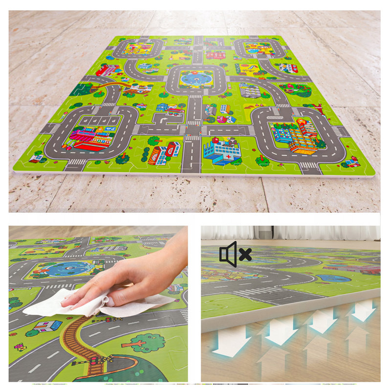 ⭐️ Każdy z 9 puzzli posiada inny fragment miasteczka oraz liczne uliczki, dzięki czemu po złożeniu mata może posłużyć jako świetna podkładka dla samochodzików i urozmaicić zabawę najmłodszych. ⭐️