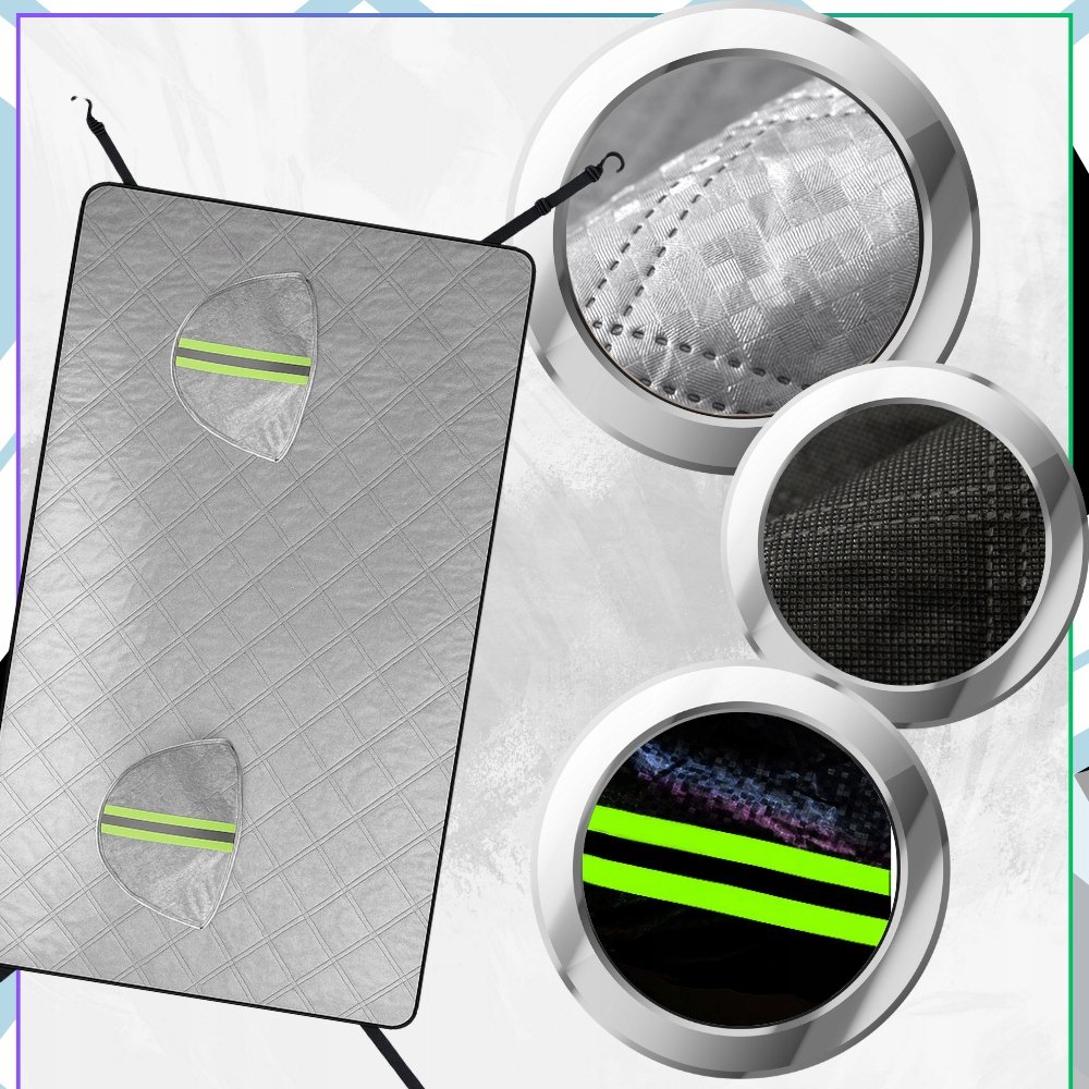 ✅ Montaż jest niezwykle prosty – elastyczne paski pozwalają szybko i stabilnie zamocować osłonę na przednią szybę. Dzięki temu osłona przeciwsłoneczna i przeciwśnieżna utrzymuje się na miejscu nawet podczas wiatru.