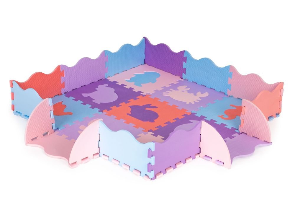 Mata składa się z 25 elementów w kształcie puzzli o grubości 1cm. Można z niech stworzyć kostkę do zabawy czy też dywanik pod zabawę.