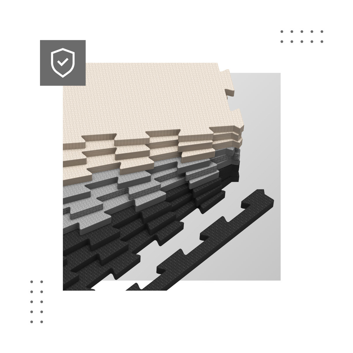 Gęsta pianka o grubości 1 cm zapewnia również dobrą izolację akustyczną i wygłusza odgłosy zabawy z dziecięcego pokoju lub kącika.