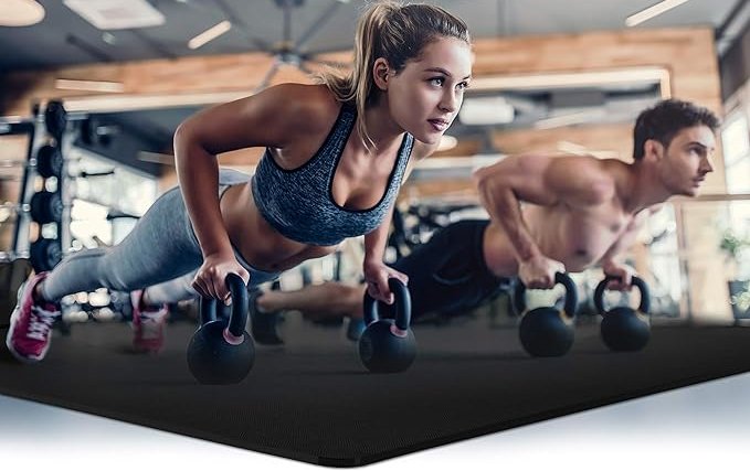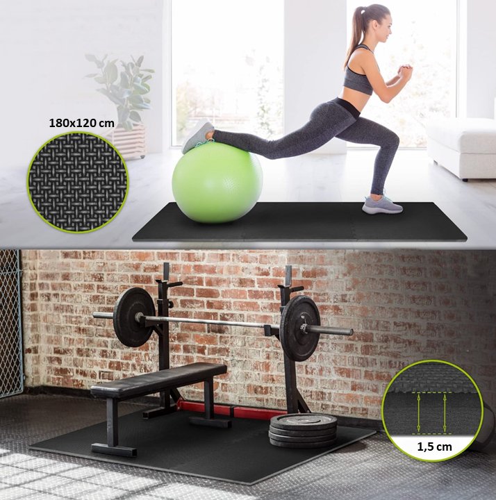 Maty puzzle sprawdzają się idealnie jako mata ochronna pod sprzęt do ćwiczeń taki jak: