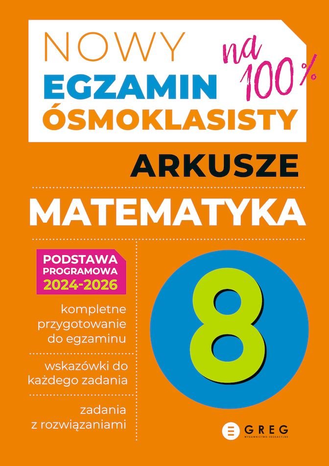 Zdaj z sukcesem egzamin ósmoklasisty z matematyki z nowymi arkuszami od Wydawnictwa GREG! Starannie opracowane arkusze obejmują pełen zakres materiału, który jest wymagany na egzaminie. Dzięki nim przećwiczysz wszystkie typy zadań, jakie mogą pojawić się w arkuszu.