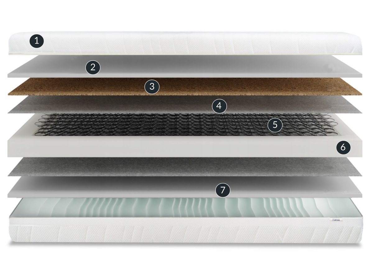 Warstwa z orzecha kokosowego zwiększa twardość materaca i rozprasza ciężar ciała na wszystkie sprężyny poprawiając walory użytkowe i trwałość materaca. Zastosowanie przekładki kokosowej korzystnie wpływa na podparcie kręgosłupa, szczególnie u osób o podwyższonej masie ciała oraz takich lubiących sen na twardszym podłożu.