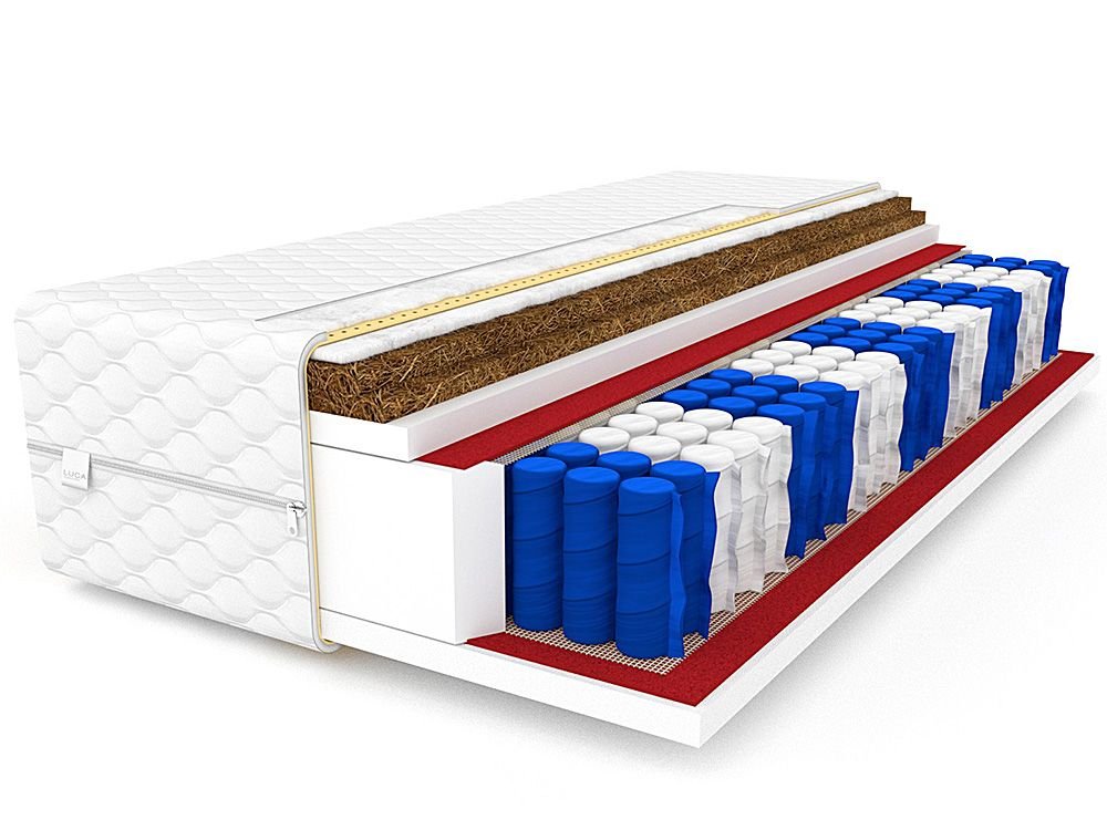 Materac z wkładem kieszeniowym otoczonym dwustronnie pianką poliuretanową wysoko elastyczną oraz jednostronnie podwójną warstwą maty kokosowej. Wykonany z zastosowaniem najnowszych technologii, ze sprawdzonych komponentów najwyższej jakości.