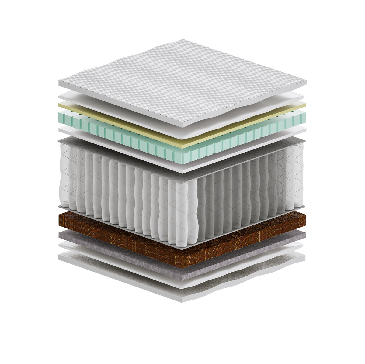 2x Kokos - warstwa kokosowa utwardza i usztywnia powierzchnię materaca. Jest wykonana z włókien łupiny orzecha kokosowego. Włókna są twarde i sztywne , zawierają mnóstwo soli mineralnych, których zadaniem jest ochrona owocu przed wnikaniem do wewnątrz bakterii, grzybów i innych szkodliwych drobnoustrojów. Właściwość tą zachowuje również mata kokosowa. Jest antyalergiczna, antybakteryjna i antygrzybiczna. Mata jest przewiewna, odporna na wilgoć, wchłania jej nadmiar i odparowuje do otoczenia. Zapewnia to komfort osobom cierpiącym na nadmierną potliwość.