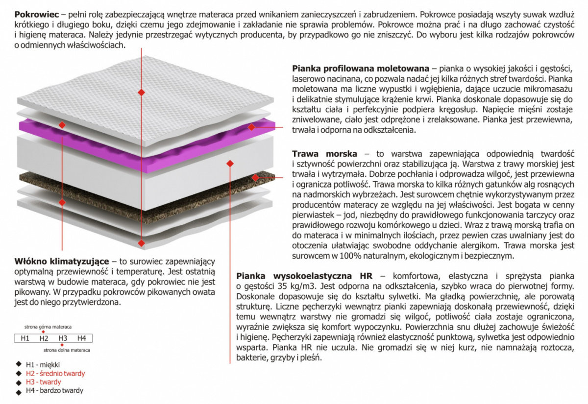 Gwarancja budowy: możesz go rozciąć i sprawdzić jego budowę. Gwarantujemy że będzie w 100% zgodna z tym co na schemacie! Jeśli znajdziesz coś innego zwracamy podwójny koszt materaca.