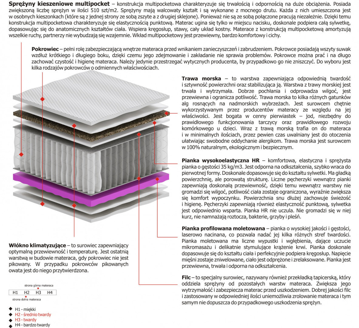 Twardość H2 - materac jest średnio twardy