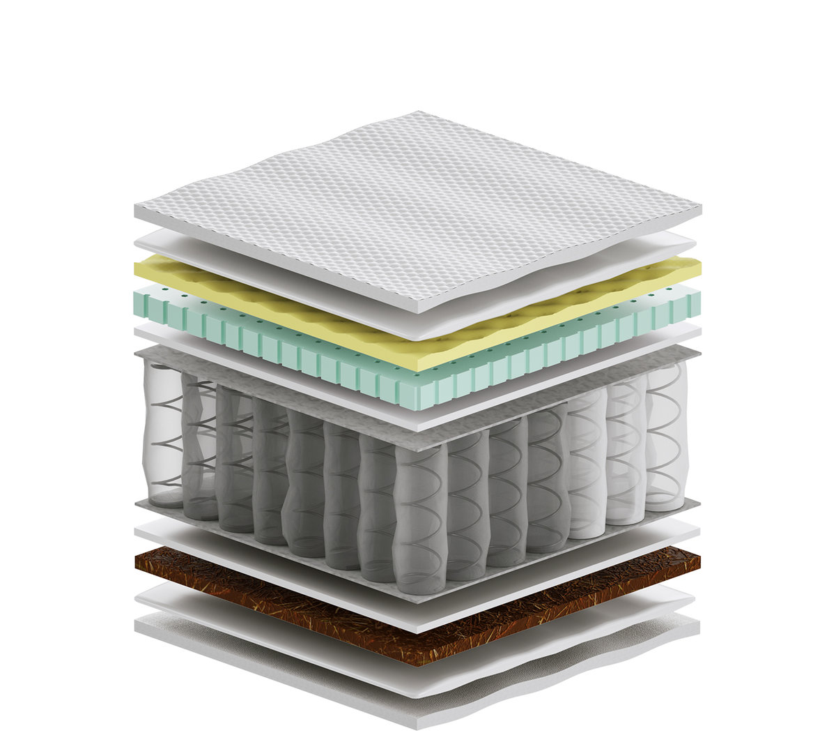Kokos - warstwa kokosowa utwardza i usztywnia powierzchnię materaca. Jest wykonana z włókien łupiny orzecha kokosowego. Włókna są twarde i sztywne , zawierają mnóstwo soli mineralnych, których zadaniem jest ochrona owocu przed wnikaniem do wewnątrz bakterii, grzybów i innych szkodliwych drobnoustrojów. Właściwość tą zachowuje również mata kokosowa. Jest antyalergiczna, antybakteryjna i antygrzybiczna. Mata jest przewiewna, odporna na wilgoć, wchłania jej nadmiar i odparowuje do otoczenia. Zapewnia to komfort osobom cierpiącym na nadmierną potliwość.