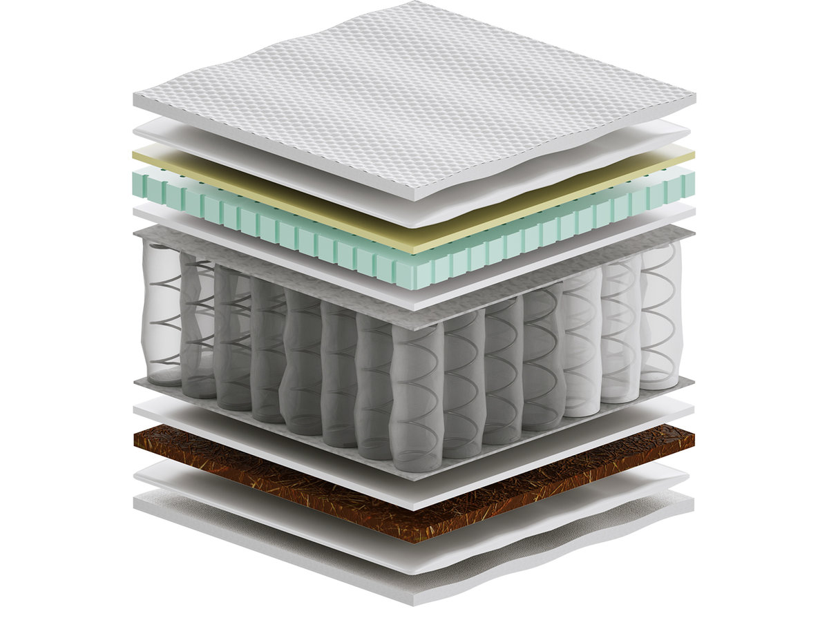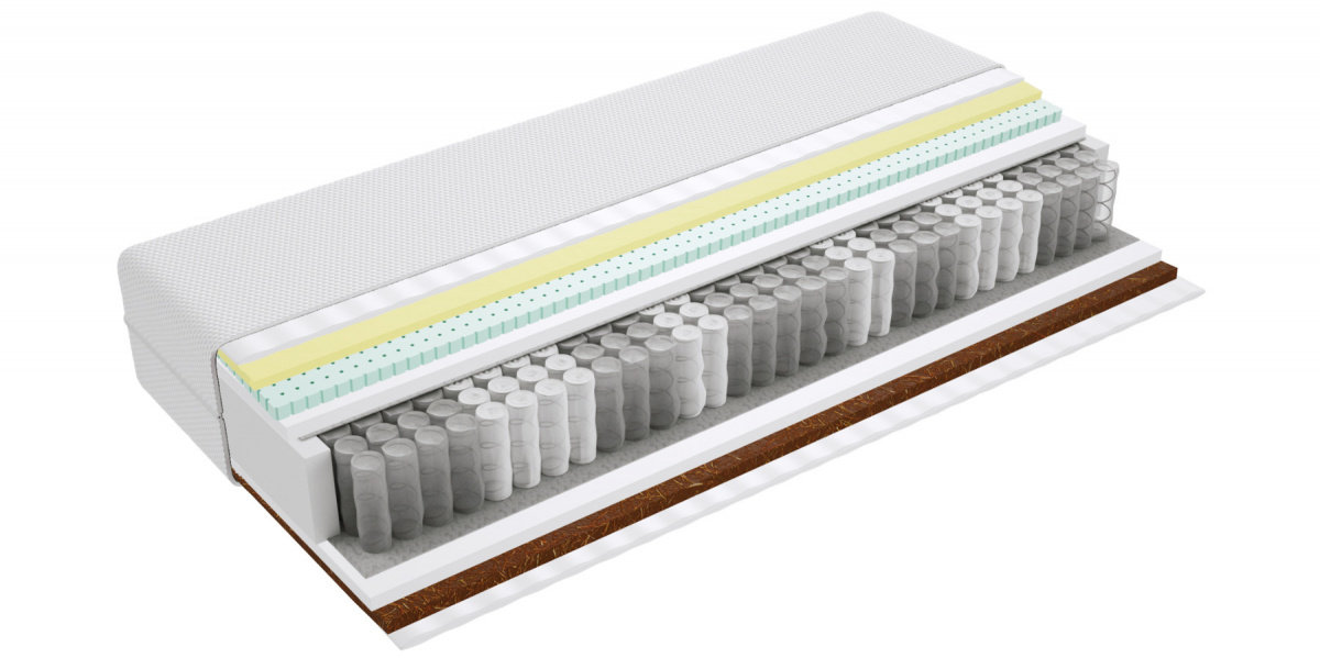 Kokos - warstwa kokosowa utwardza i usztywnia powierzchnię materaca. Jest wykonana z włókien łupiny orzecha kokosowego. Włókna są twarde i sztywne , zawierają mnóstwo soli mineralnych, których zadaniem jest ochrona owocu przed wnikaniem do wewnątrz bakterii, grzybów i innych szkodliwych drobnoustrojów. Właściwość tą zachowuje również mata kokosowa. Jest antyalergiczna, antybakteryjna i antygrzybiczna. Mata jest przewiewna, odporna na wilgoć, wchłania jej nadmiar i odparowuje do otoczenia. Zapewnia to komfort osobom cierpiącym na nadmierną potliwość.