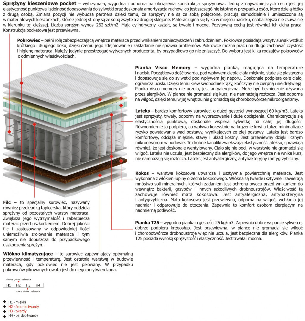 Twardość H2 - materac jest średnio twardy