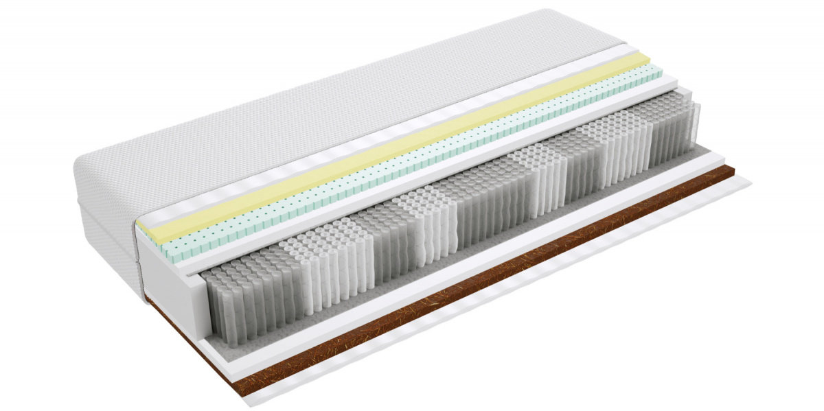 -Kokos - warstwa kokosowa utwardza i usztywnia powierzchnię materaca. Jest wykonana z włókien łupiny orzecha kokosowego. Włókna są twarde i sztywne , zawierają mnóstwo soli mineralnych, których zadaniem jest ochrona owocu przed wnikaniem do wewnątrz bakterii, grzybów i innych szkodliwych drobnoustrojów. Właściwość tą zachowuje również mata kokosowa. Jest antyalergiczna, antybakteryjna i antygrzybiczna. Mata jest przewiewna, odporna na wilgoć, wchłania jej nadmiar i odparowuje do otoczenia. Zapewnia to komfort osobom cierpiącym na nadmierną potliwość.