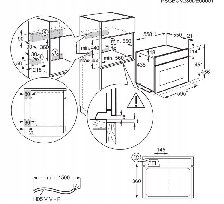 Wymiary w zabudowie (W x S x G) [mm]: 450x560x550