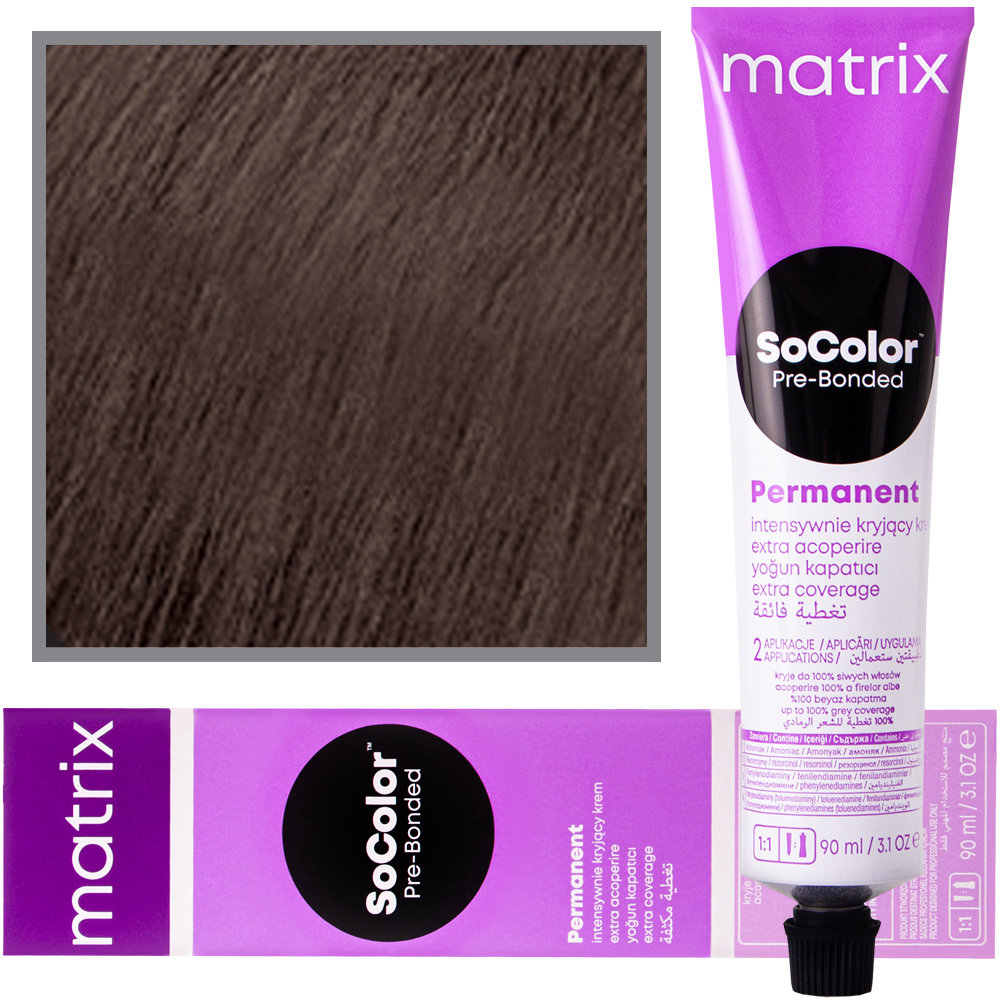 Matrix So Color PreBond - profesjonalna Farba do trwałej koloryzacji Pojemność: 90 Nazwa koloru producenta: 505NA Kolor: Ekstra Kryjący Jasny Brąz Neutralny Popielaty Matrix SoColor Pre-Bonded