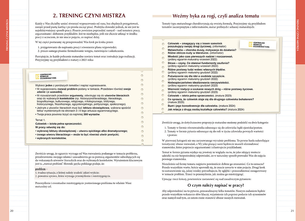 Książka dla maturzystów ma pomóc w samodzielnym zaplanowaniu wypowiedzi argumentacyjnych, które pojawiają się na maturze aż dwukrotnie. Najpierw jest to wypracowanie, a potem wypowiedź ustna związana