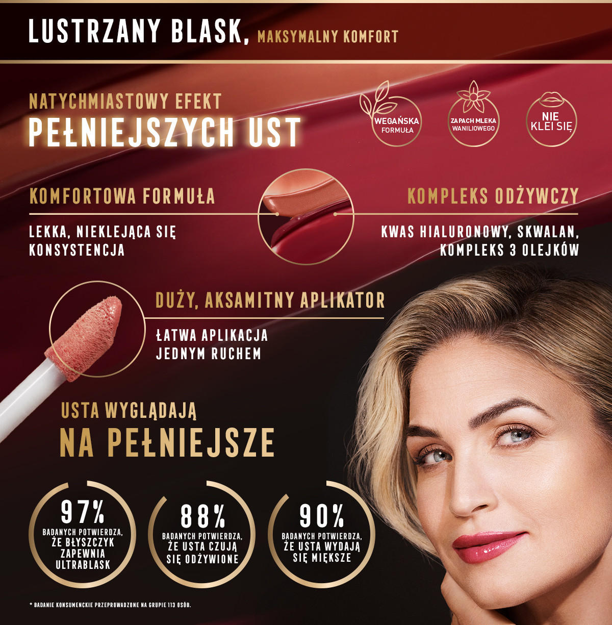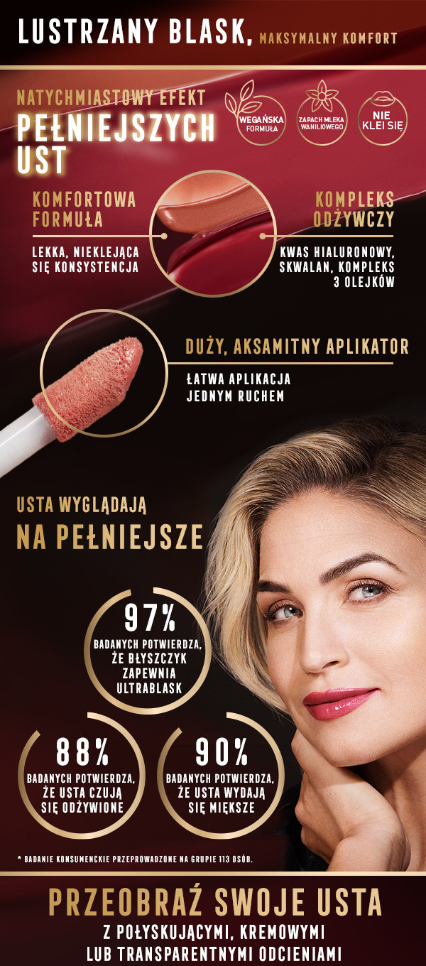 Właśnie zrecenzowałem Max Factor, 2000 Calorie Lip Glaze, Błyszczyk nawilżający do ust z kompleksem odżywczym, 150 Caramel Swish, 4.4ml
