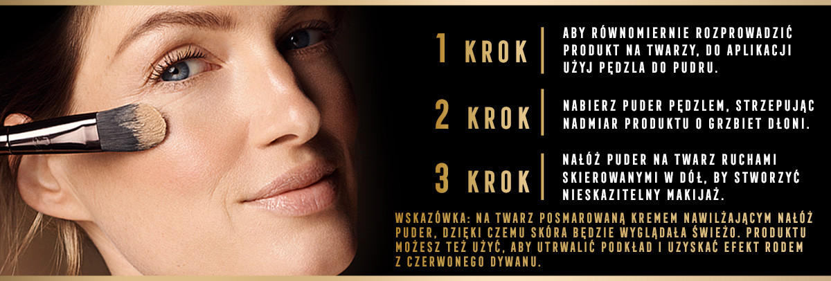 Puder idealne współgra ze wszystkimi rodzajami cery i zapewnia średnie lub pełne krycie.