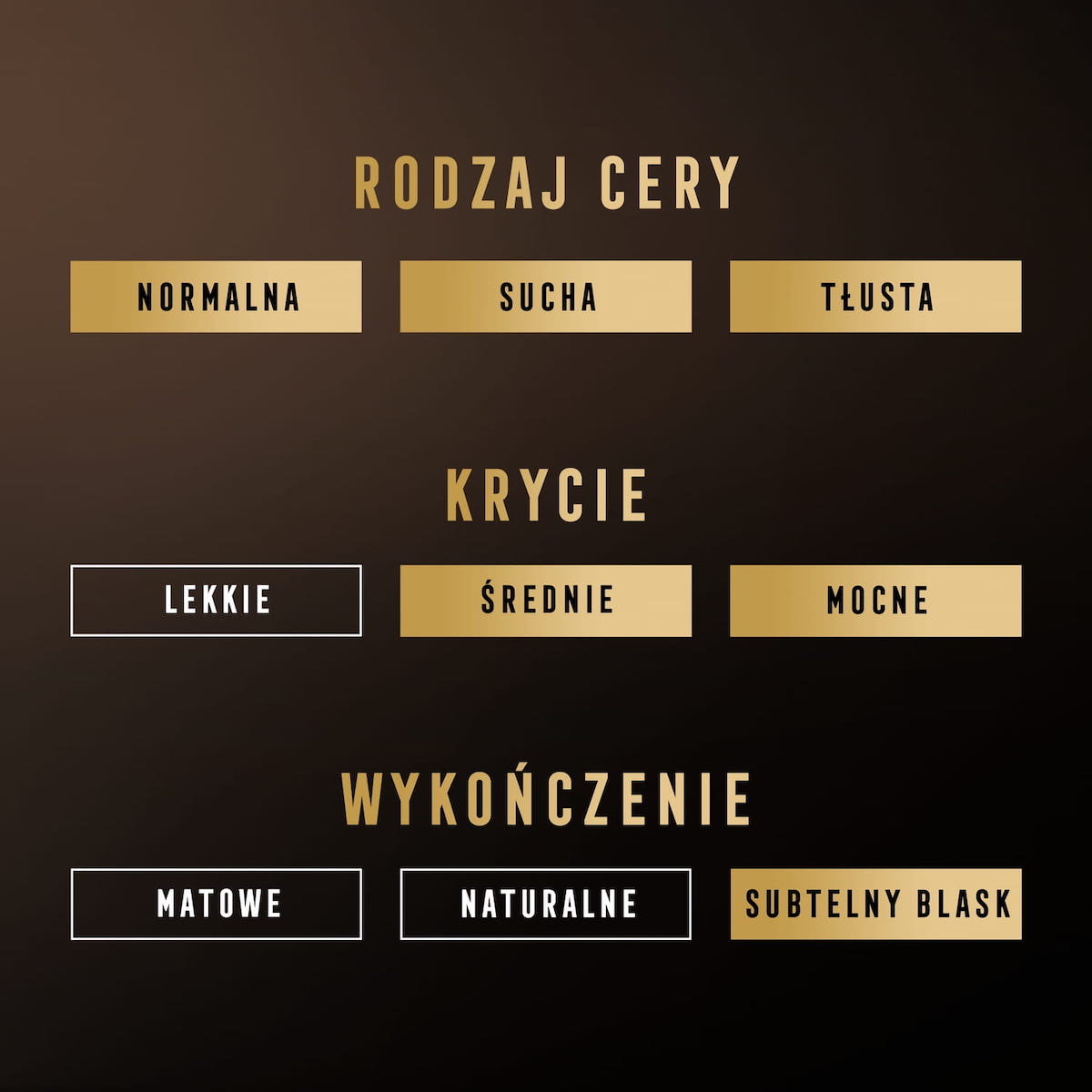 Puder idealne współgra ze wszystkimi rodzajami cery i zapewnia średnie lub pełne krycie.