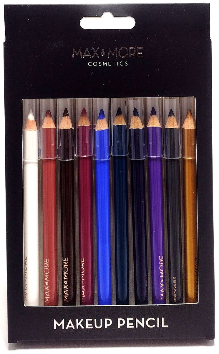 Kredki do makijażu MAX & MORE Pokaźny zestaw kredek zapewni odpowiedni wybór koloru kredki do oczu. Ilość: 10 szt.