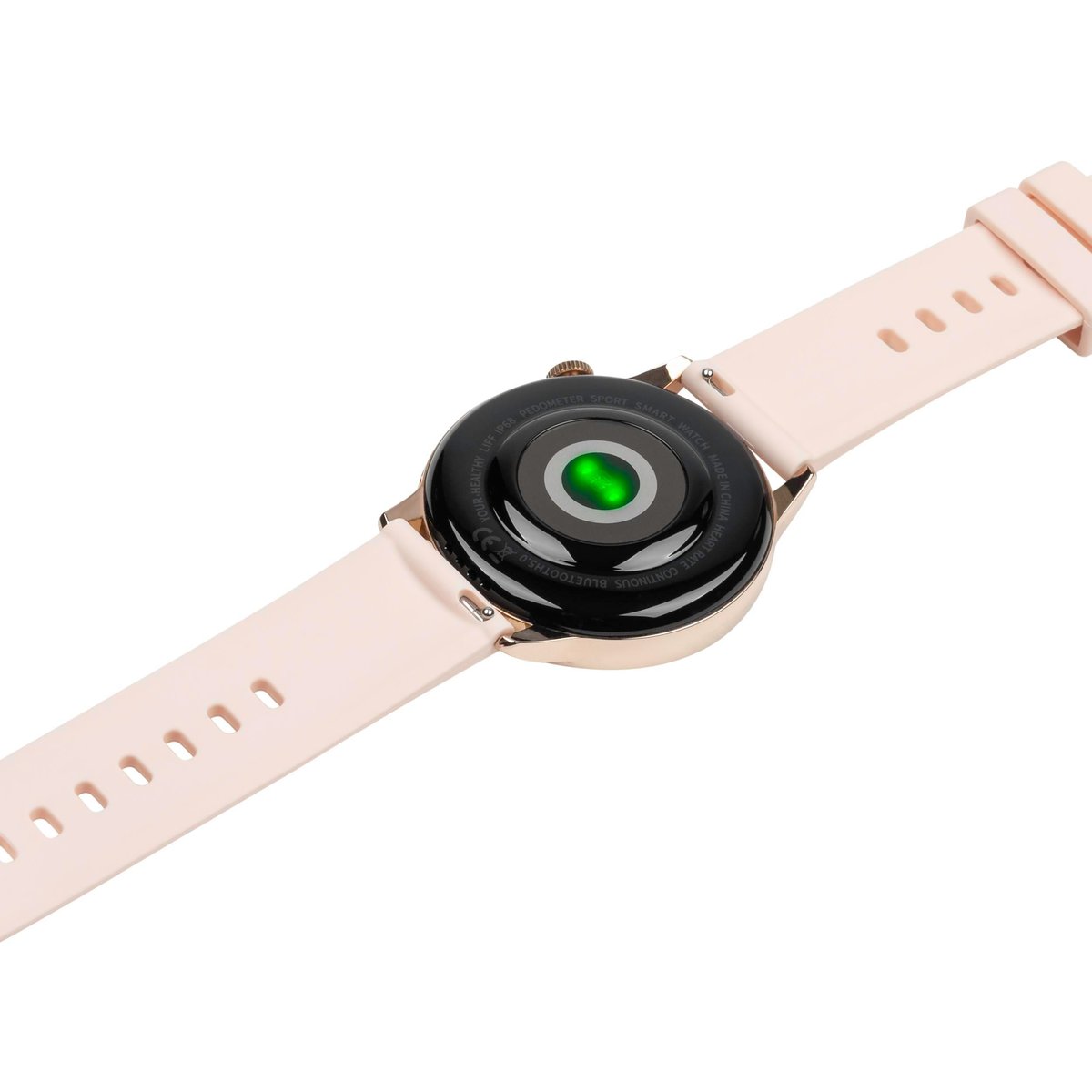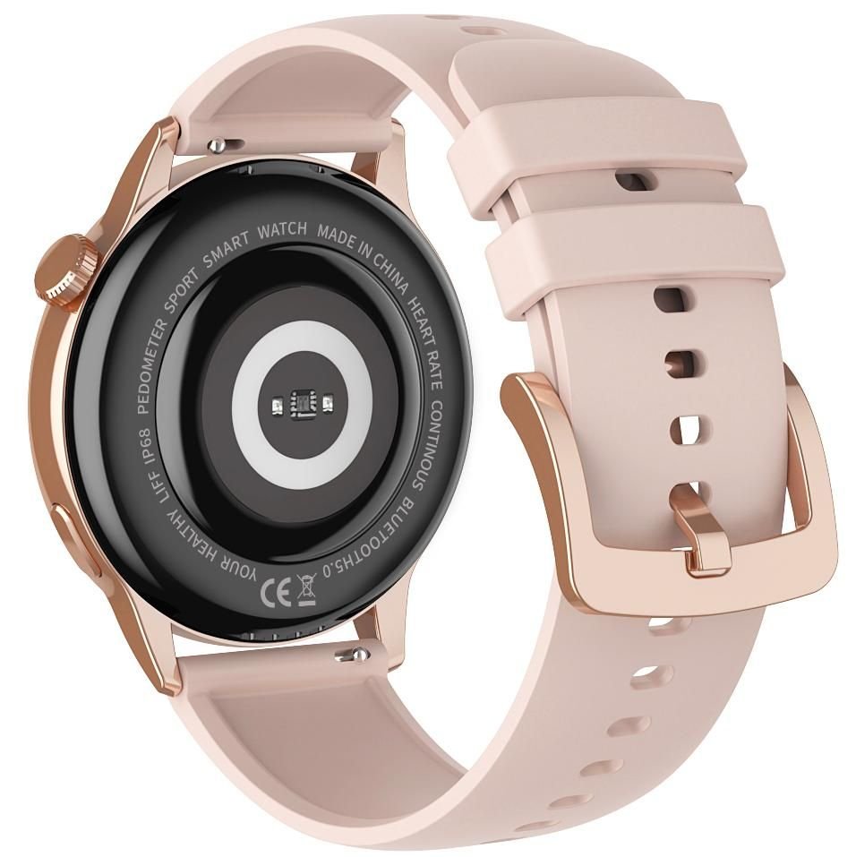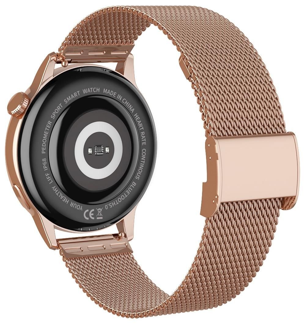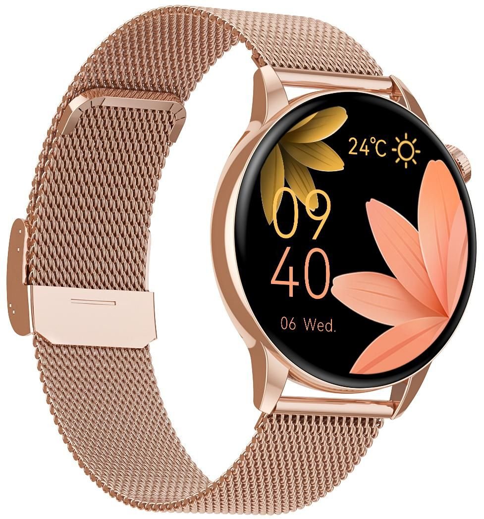 Rodzaj: Smartwatch Rodzaj mechanizmu: Elektroniczny Design: Klasyczno-sportowy Kolor paska: Różowe złoto Kolor koperty: Złoty Kolor tarczy: Wielokolorowy Typ (damski/męski): Damski Rodzaj ...
