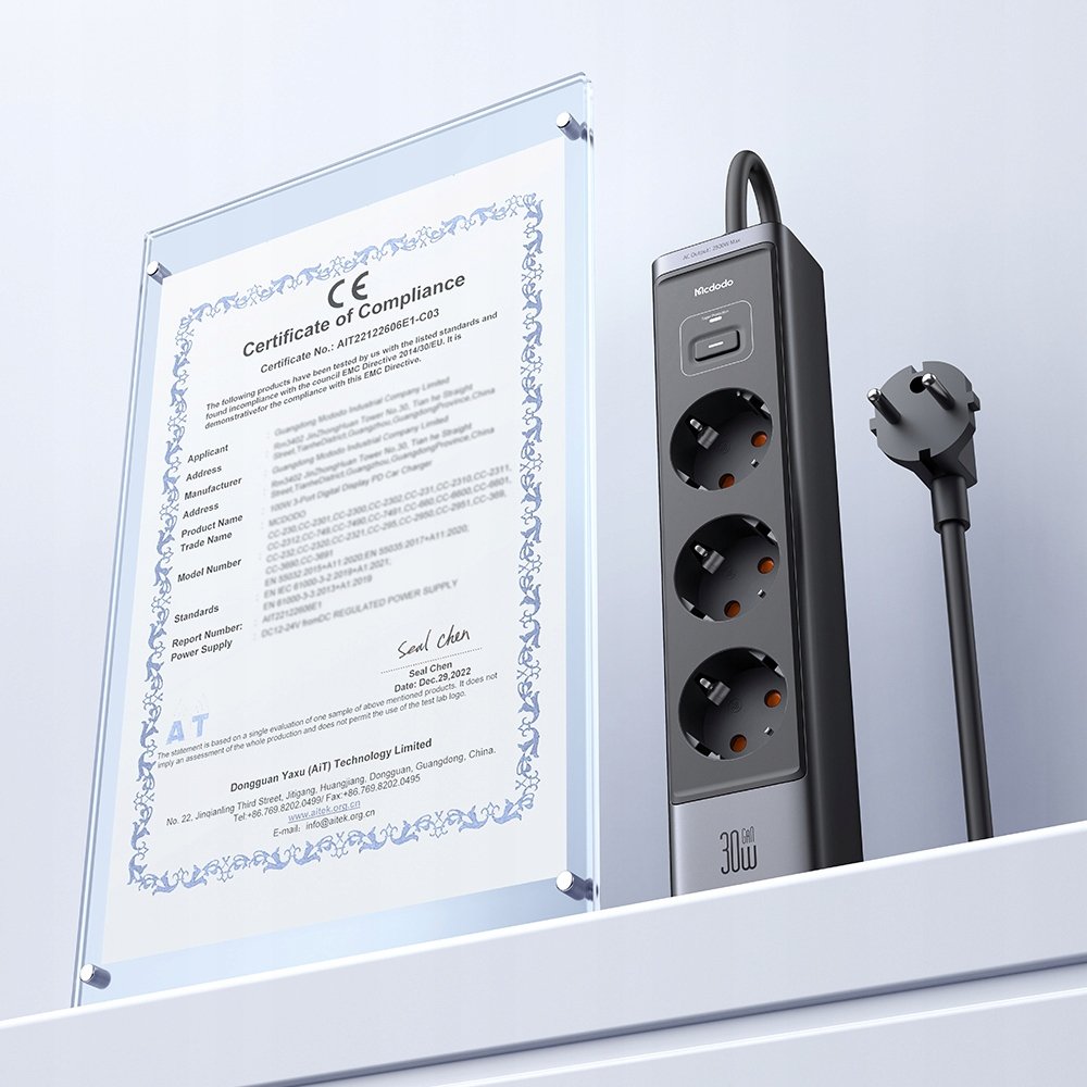 Brakuje Ci wolnych gniazdek? Postaw na porządek i wygodę! Mcdodo PowerStrip to listwa zasilająca, która zaspokoi wszystkie Twoje potrzeby! Wyposażona w 3 gniazda AC, 2 porty USB-C i 1 port USB o mocy 30W, pozwala zasilić aż 6 urządzeń jednocześnie. Ładuj smartfony, zegarki, laptopy i inne urządzenia, eliminując chaos kabli i zbędnych ładowarek. Zapewnij sobie funkcjonalność i porządek na biurku z Mcdodo PowerStrip!