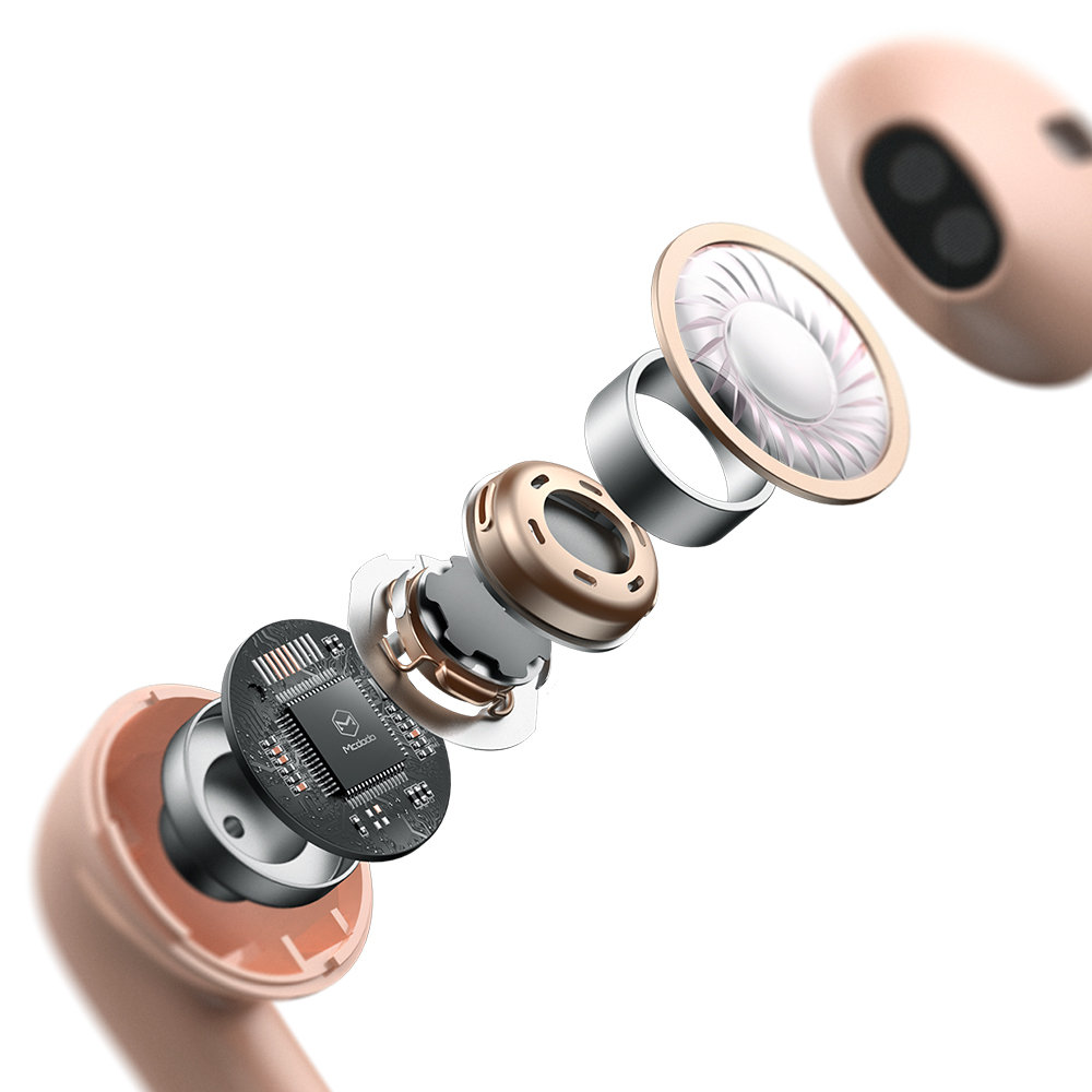 Mcdodo Dynamic TWS to douszne słuchawki bluetooth 5.0 TWS z pudełkiem ładującym. Słuchawki wspierają technologię TWS (True Wireless Stereo) - obie słuchawki łączą się ze sobą tworząc bezprzewodowy zestaw stereo. Przenośne pudełko z wbudowaną baterią oprócz funkcji ładowania pozwala bezpiecznie przechowywać słuchawki w kieszeni, torbie lub plecaku. Uwolnij swoje ręce i słuchaj muzyki, radia internetowego, podczas pracy, spaceru, treningu czy prowadzenia samochodu. Słuchawki Mcdodo TWS są idealnym rozwiązaniem dla użytkowników smartfonów, komputerów, notebooków, tabletów i innych urządzeń obsługujących technologię Bluetooth. Są kompatybilne z większością urządzeń z systemem Android oraz iOS. Słuchawki posiadają także mikrofon, dzięki czemu bez problemu możesz prowadzić rozmowy głosowe. Czas trwania rozmów/ słuchania muzyki na pełnym naładowaniu wynosi około 300 minut (w zależności od poziomu głośności), dzięki wykorzystaniu energooszczędnej technologii Bluetooth 5.0.