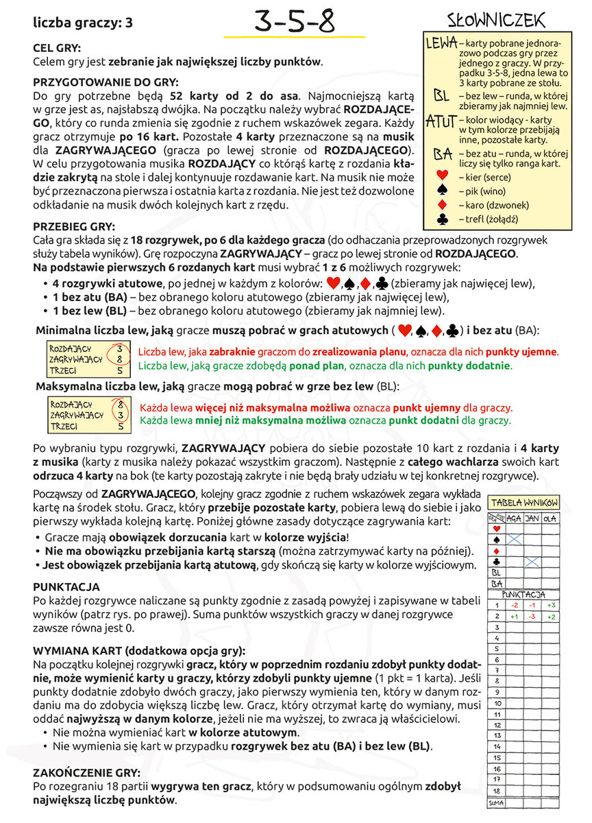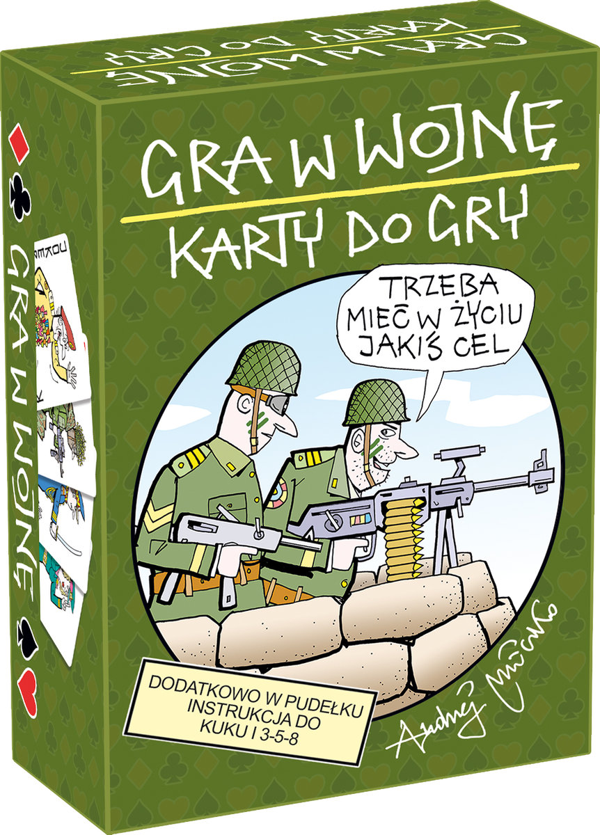 Wojna to jedna z najstarszych gier karcianych na świecie. Zasady gry opisane są w zwięzłej, kolorowej instrukcji, a wysokiej jakości karty, ilustrowane rysunkami Andrzeja Mleczki, dopełniają całości.