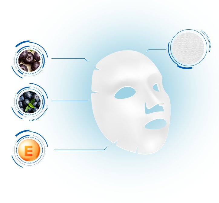Płachta z materiału TENCEL, wytwarzanego metodą nanotechnologii ze 100% celulozy z eukaliptusa. Idealnie dopasowuje się do kształtu twarzy, dając efekt drugiej skóry. Wspomaga efektywne wchłanianie się składników aktywnych.