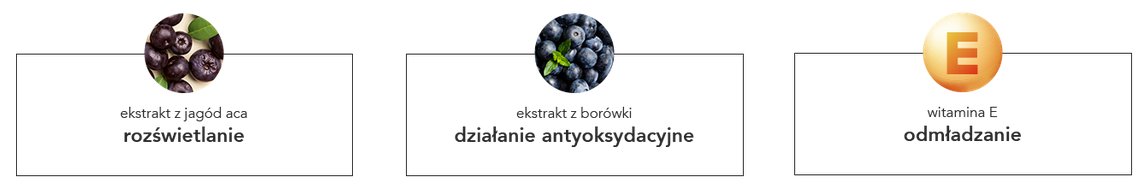 Maska do cery odwodnionej z drobnymi zmarszczkami. Działa antyoksydacyjnie, rewitalizująco, rozświetlająco i zapobiega starzeniu się skóry. Formuła esencji z wyciągami z jagód acai i borówki, witaminą E, ekstraktami z owoców neutralizuje wolne rodniki, odżywia, rewitalizuje, rozświetla.