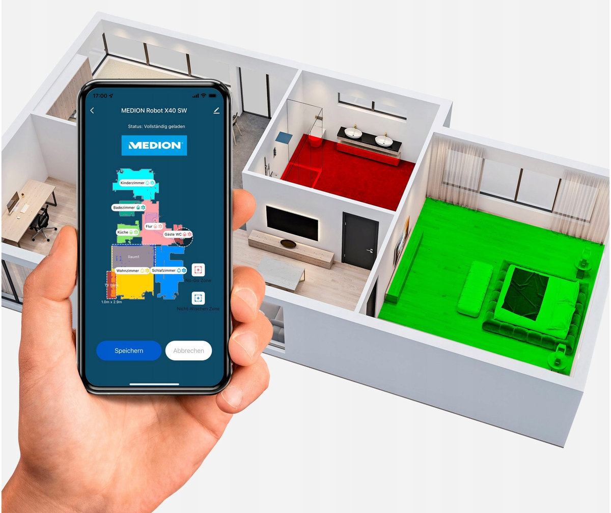 Robot odkurzający i myjący podłogę skanuje Twoją przestrzeń życiową, aby móc efektywniej się poruszać – nawet po kilku piętrach! Dzięki praktycznej aplikacji masz w każdej chwili dostęp do materiału mapowego i zlecasz diabłu sprzątającemu np. posprzątanie kuchni.