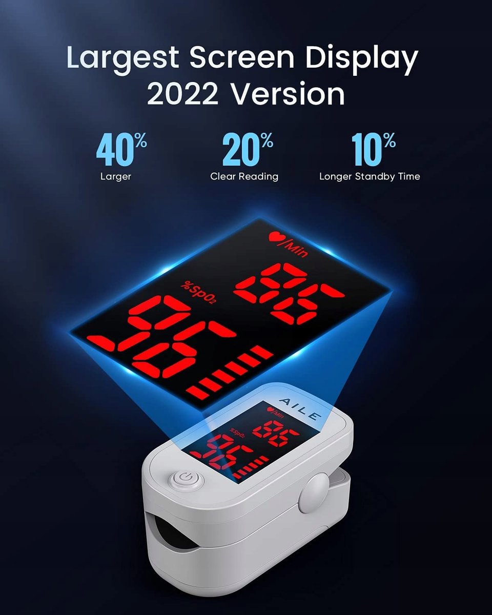 AILE Pulsoksymetr Monitor tlenu Palec Dorośli Dokładny Szybki Łatwy Większy czerwony ekran Monitor saturacji krwi ze smyczą Monitor oksymetru Sats Monitor saturacji tlenu Monitor tlenu we krwi
