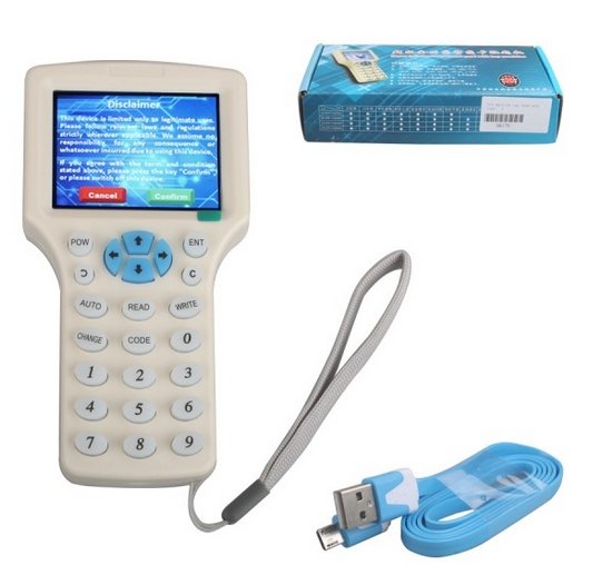 PROFESJONALNY PROGRAMATOR DUPLIKATOR KOPIARKA BRELOKÓW I KART 10 CZĘSTOTLIWOŚCI WRAZ Z 8 KARTAMI RFID (PROGRAMOWALNY CHIP EM4305) W ZESTAWIE. ...