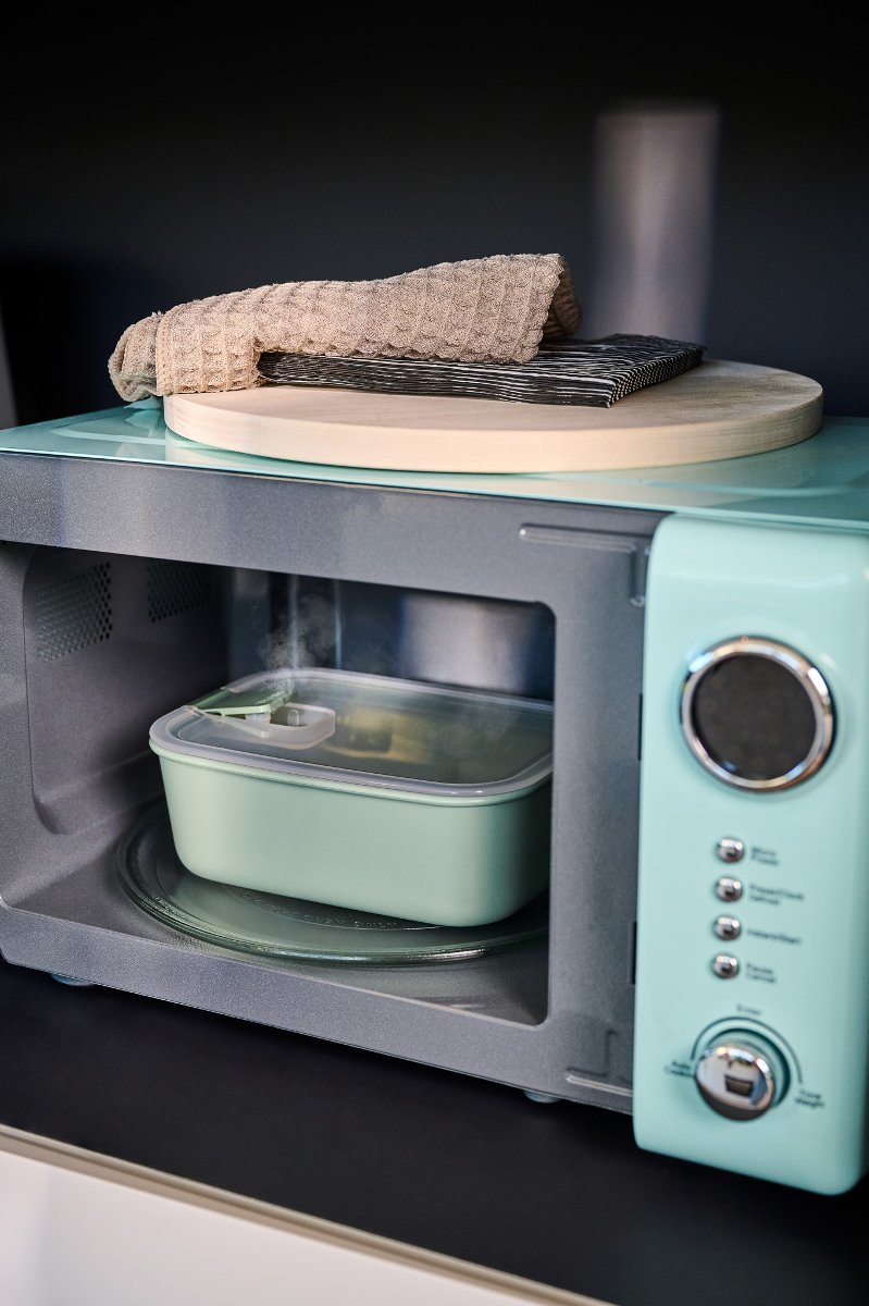 Pojemniki EasyClip możemy używać w kuchence mikrofalowej nawet z zamkniętą pokrywą (2 minuty/ 600-750 wat), wystarczy unieść klips, by para wodna i powietrze mogło swobodnie się wydostać. Produkt został wyposażony w zawór pary o unikatowej konstrukcji.