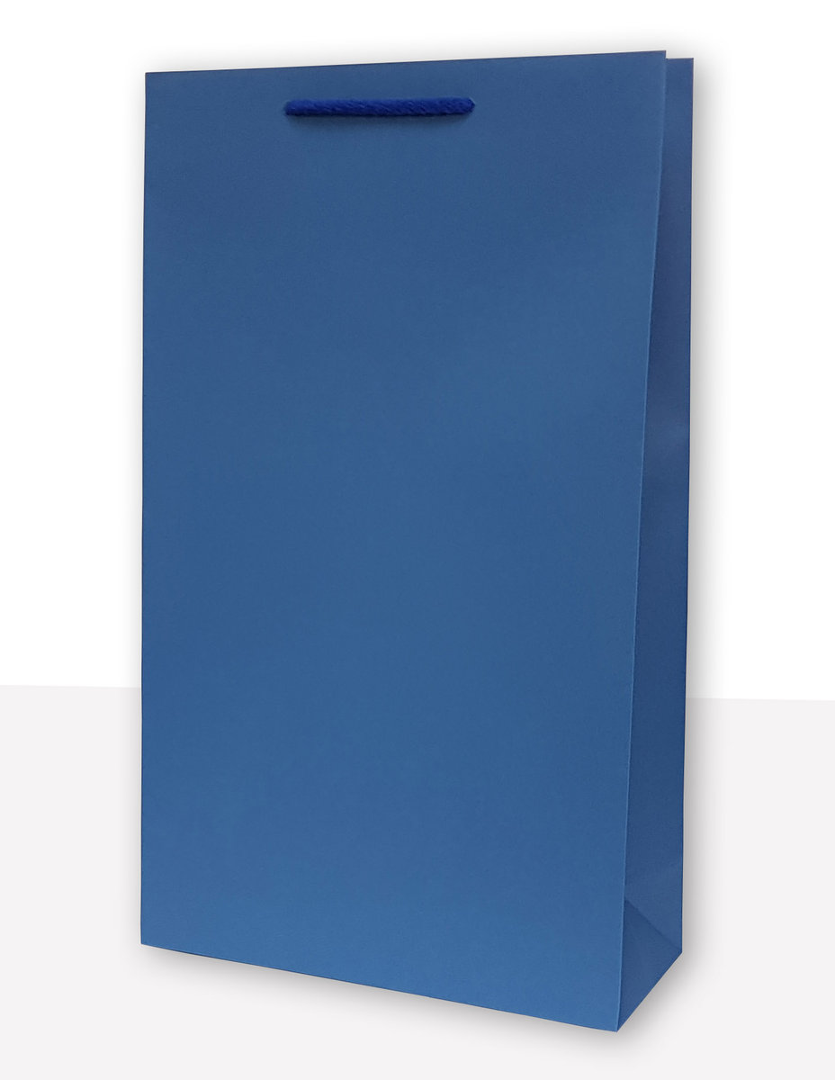 Torba jednobarwna niebieska o wymiarze wys 36 cm szer 24 cm głęb 9 cm wykonana z papieru barwionego w masie o gramaturze min 120g/m2, uchwyt sznurkowy bawełniany, usztywnione kartonem denko i ...