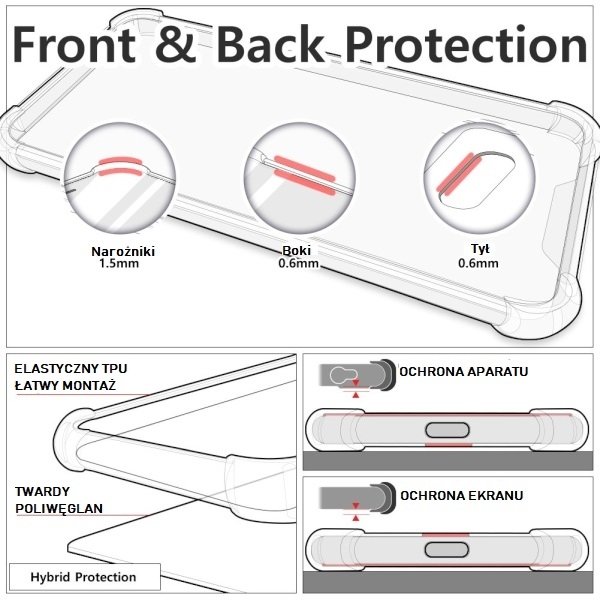 Podniesione krawędzie zapewniają dodatkowe zabezpieczenie ekranu i aparatu. Etui wzbogacone jest o technologię poduszek powietrznych w narożnikach dla jeszcze lepszej ochrony przy ewentualnym upadku.