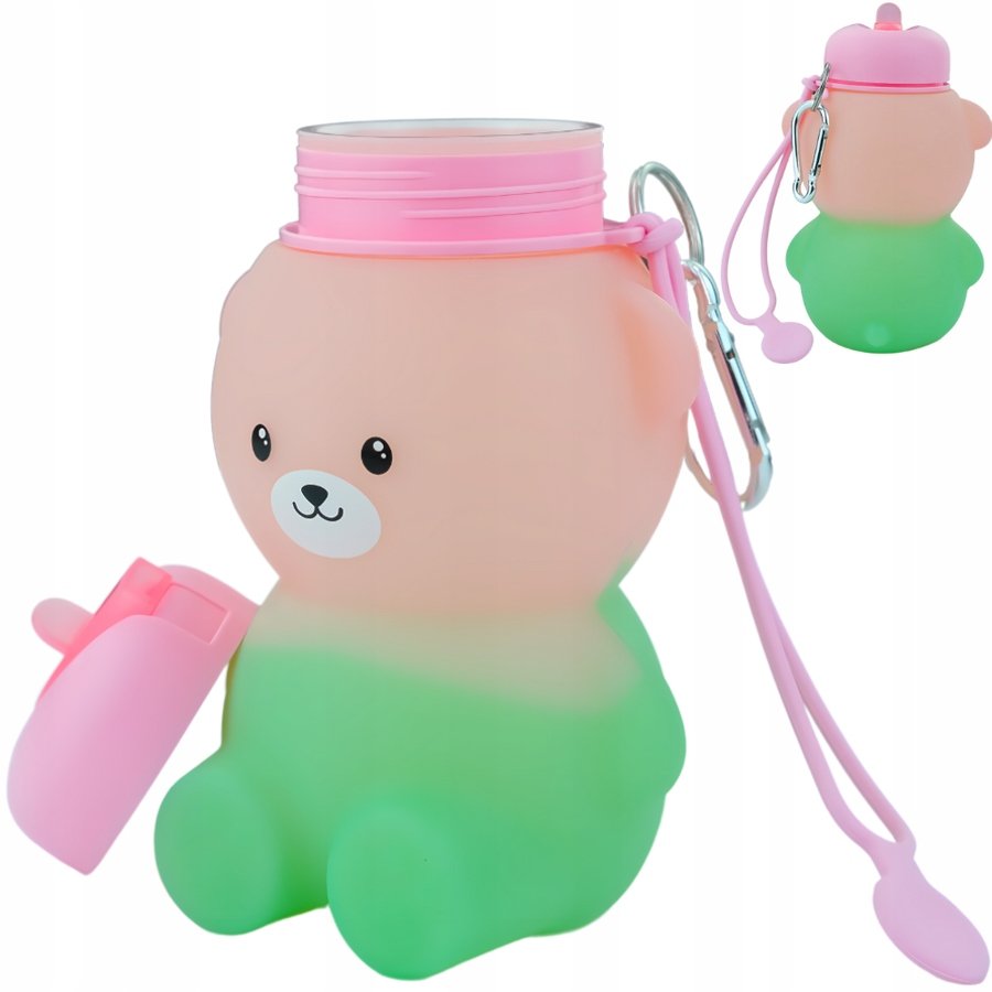 Odkryj uroczą butelkę na wodę w kształcie misia, która idealnie łączy funkcjonalność z zabawnym designem, przynosząc uśmiech na twarz zarówno dzieciom, jak i dorosłym. Ta pastelowa butelka, z różową zakrętką i gradientowym przejściem kolorów od beżowego do zielonego, to doskonałe akcesorium na każdy dzień – do szkoły, na spacer czy rodzinne wycieczki.