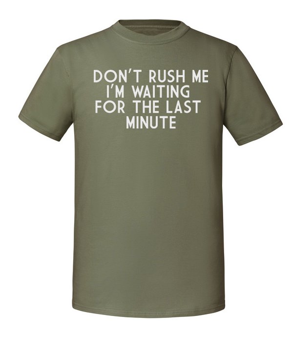 Właśnie zrecenzowałem Męska koszulka z nadrukiem - Don't Rush Me I'm Waiting For The Last Minute - Olive 3XL