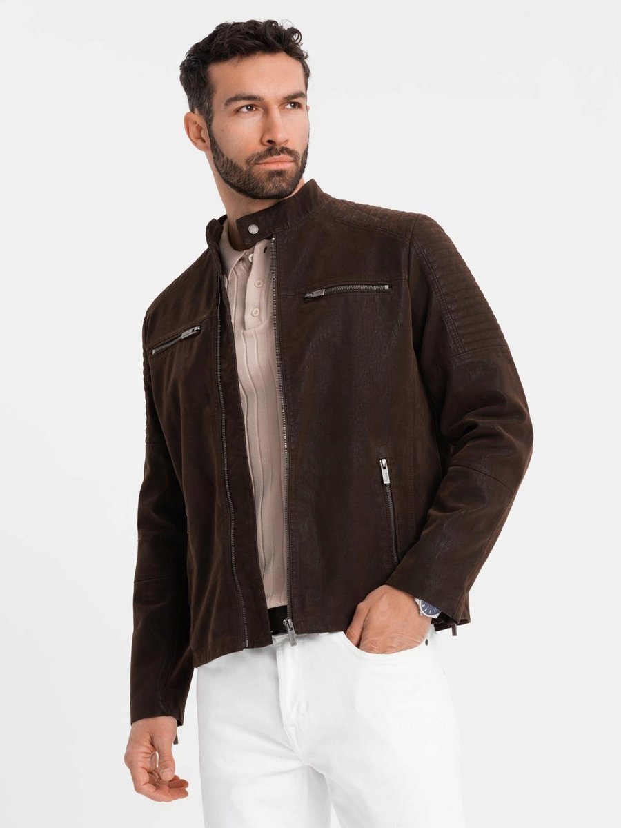 | Nazwa: | Męska kurtka biker w stylu retro ze stójką brązowa V1 OM-JAFL-0197 L |