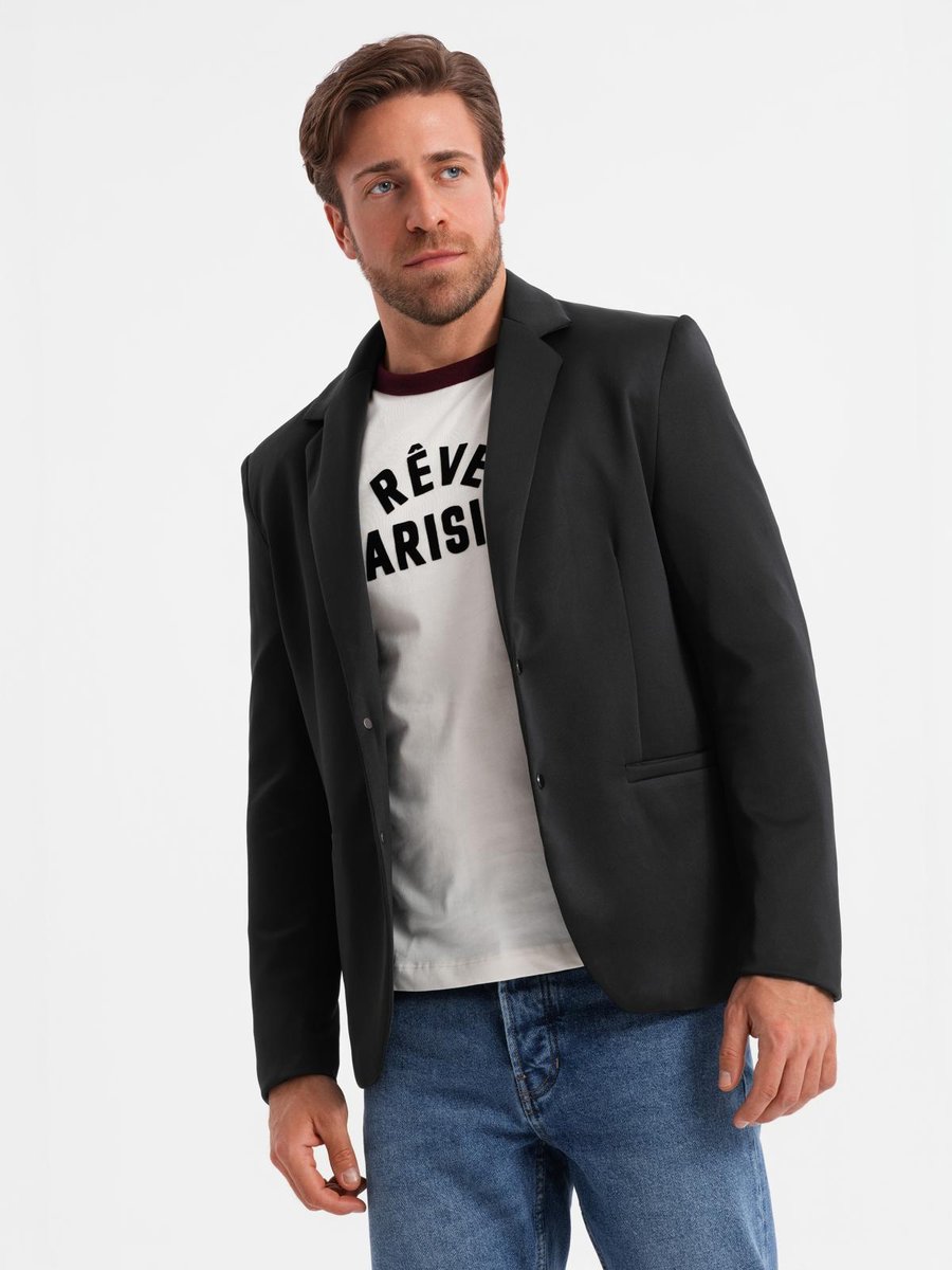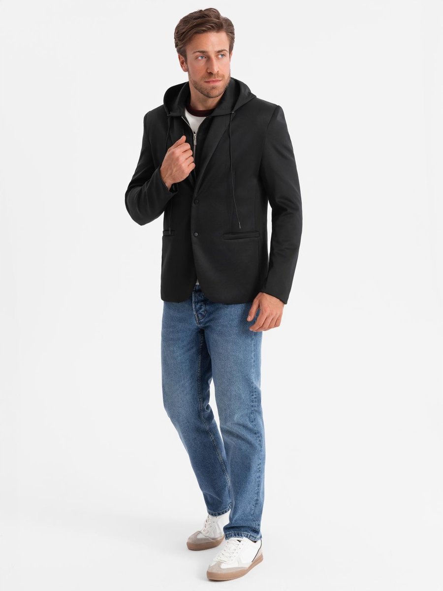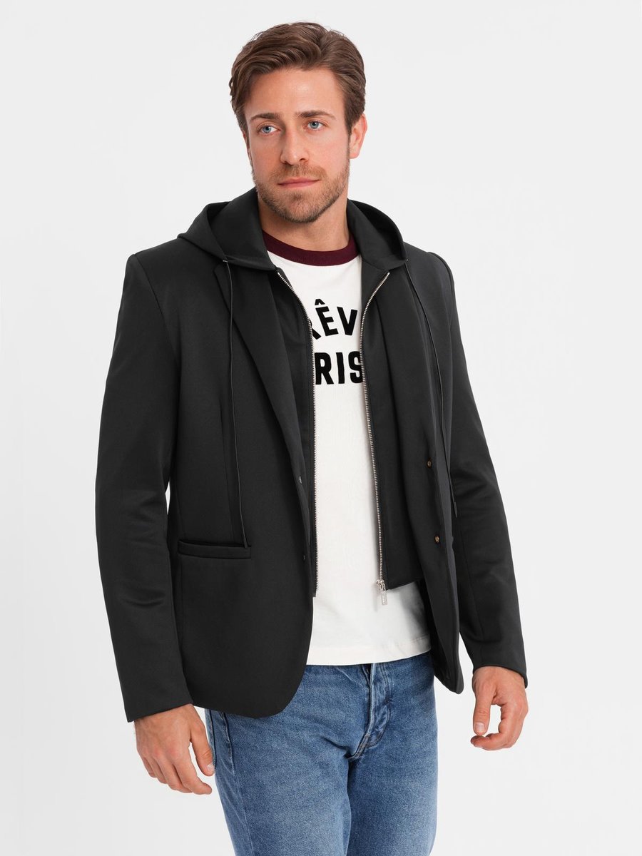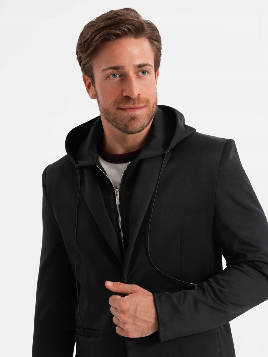 | Nazwa: | Męska marynarka z odpinaną podpinką i kapturem czarna V1 OM-BLZB-0126 S |