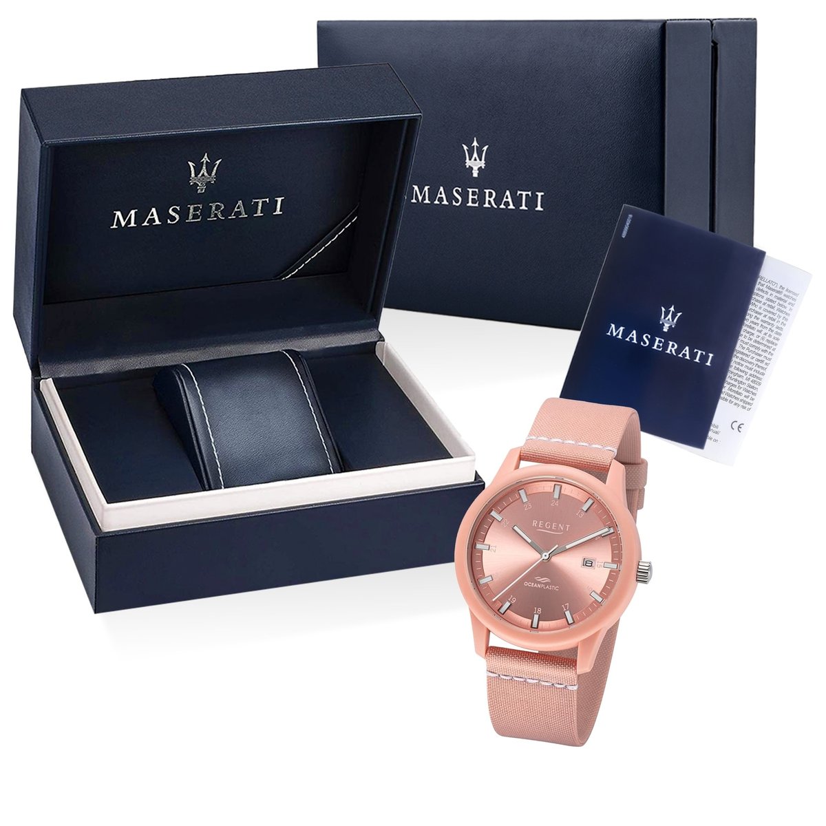 Właśnie zrecenzowałem Męski zegarek analogowy Regent z nylonowym paskiem w kolorze różowo-białym URBA733