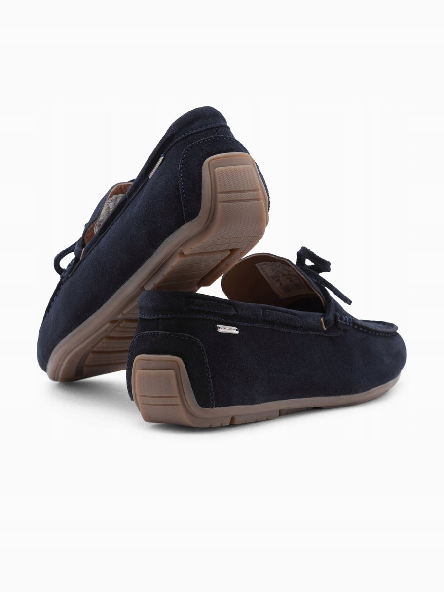 kolekcja Ombre Quintessence męskie skórzane mokasyny buty z miękkiego zamszu podeszwa typu driver miękka skórzana wkładka ozdobny rzemyk przepleciony wokół buta wiązany na kokardkę dekoracyjne przeszycia subtelny metalowy pin z brandingiem materiał wierzchni – naturalna skóra o zamszowym wykończeniu podszewka z wkładką – skóra i tkanina podeszwa – inny materiał Kolor: granatowy