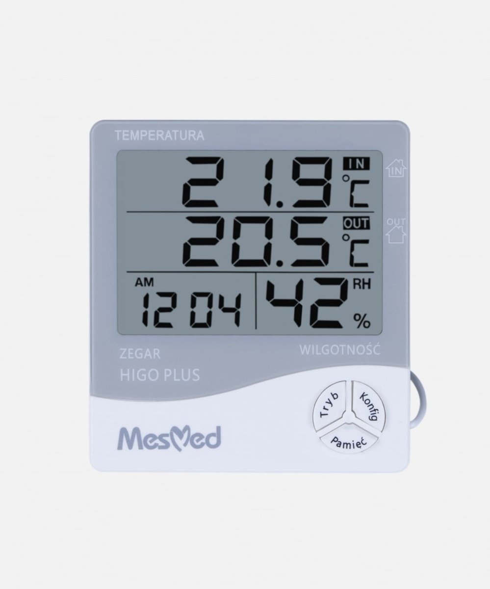 Higrometr MesMed Higo Plus to 3 praktyczne urządzenia w jednej obudowie.